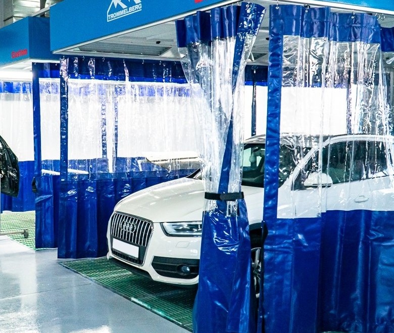 прозрачные шторы – для обеспечения видимости внутри и снаружи автомойки без дополнительного электроосвещения и визуального контроля работы специалистов;